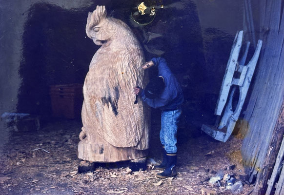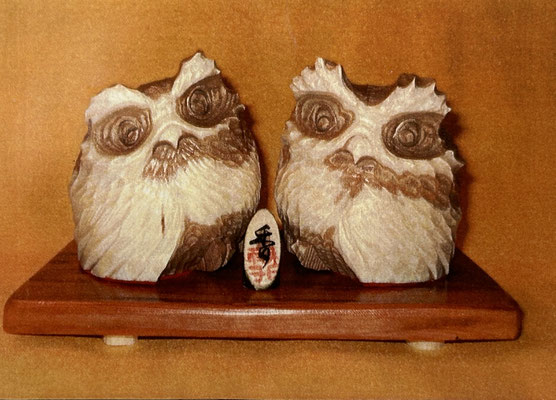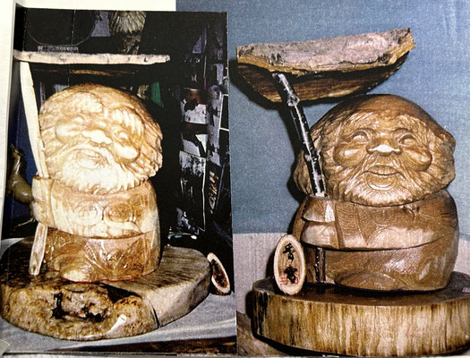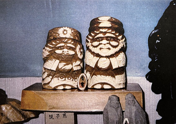 槐(えんじゅ)の木を利用した、先代オリジナルの手彫りの「笑っているコロポックル」と「微笑みのニポポ人形」が大変人気でした。先代のお客様の目の前で行う手彫りはこの地に来た方のみ、お楽しみいただけました。